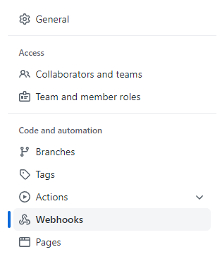 - 알림을 세팅할 Github Repository의 설정-Webhooks 메뉴로 진입