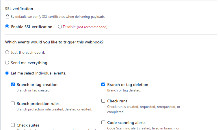 - Discord로 알림받고 싶은 이벤트 종류를 체크