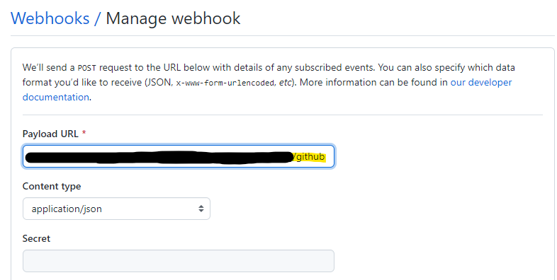 - Discord Webhook URL 을 붙여넣고 맨 끝에 /github 을 추가 (빼먹으면 안됨!!!)